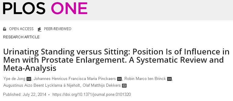 《PLOS ONE》发表一篇文章显示:对健康的成年男性来说,坐着排尿和站着排尿对身体的影响没有任何差别。若男性出现下尿路症状,坐着排尿能减轻其病症。